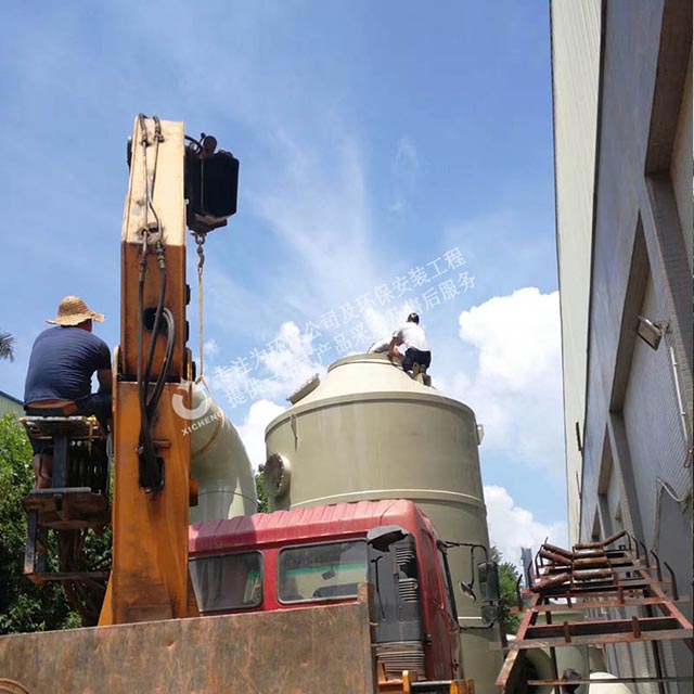 化工生產(chǎn)中常用的吸收法主要是化學吸收法,采用適當?shù)奈談┖突U氣在PP噴淋塔內(nèi)充分接觸,吸收劑將廢氣的有害物質(zhì)吸收,從而將廢氣凈化。例如用水吸收合成樹脂廠的含甲醛尾氣;用堿液循環(huán)法吸收磺化法苯酚生產(chǎn)中的含酚廢氣;酸化吸收液回收苯酚;用水和堿溶液吸收氯醇法環(huán)氧丙烷生產(chǎn)中的次氯酸化塔尾氣,并回收丙烷。